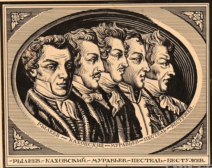 2. Изображение декабристов Павла Пестеля, Кондратия Рылеева, Сергея Муравьева-Апостола, Михаила Бестужева-Рюмина и Петра Каховского