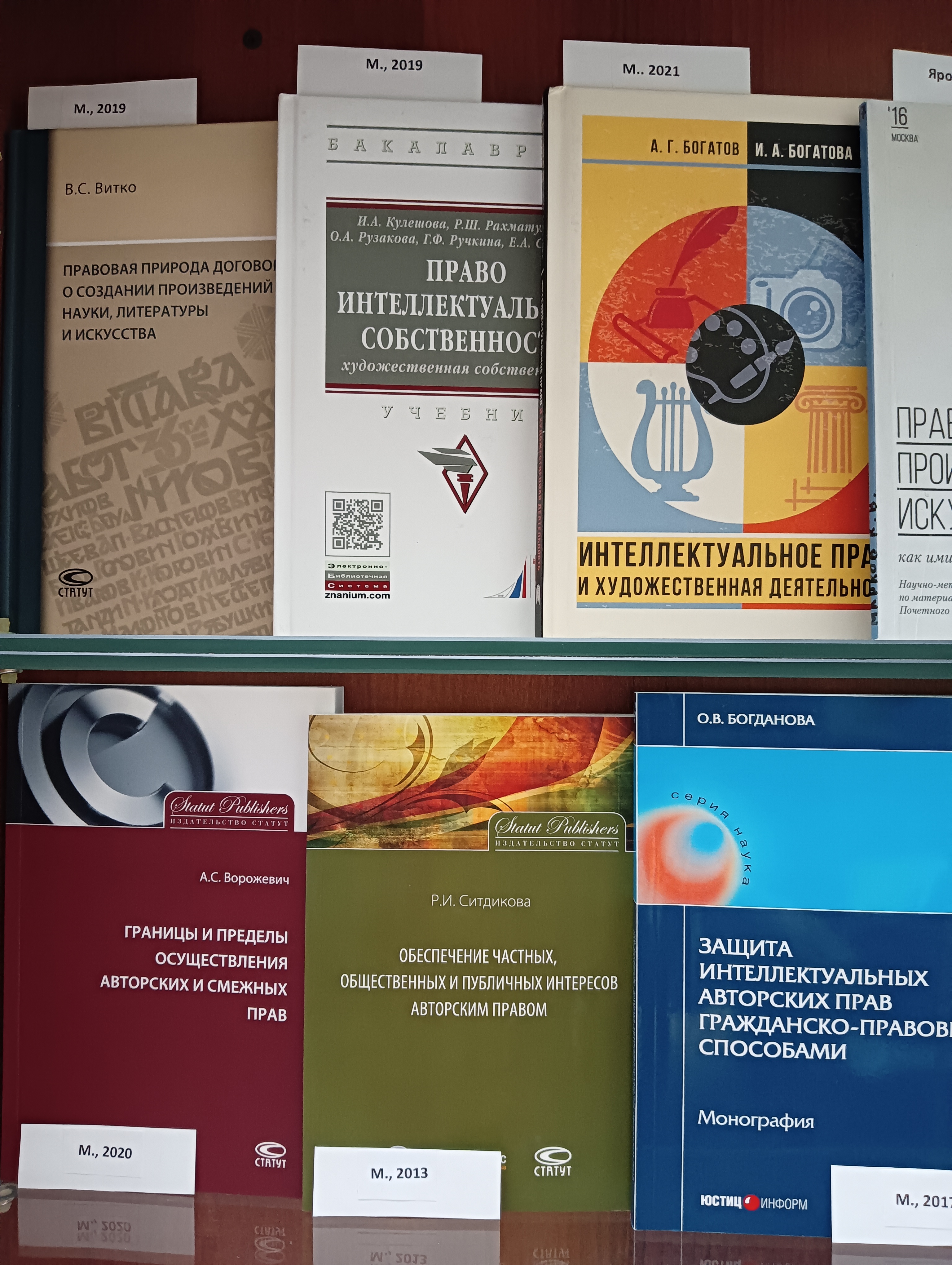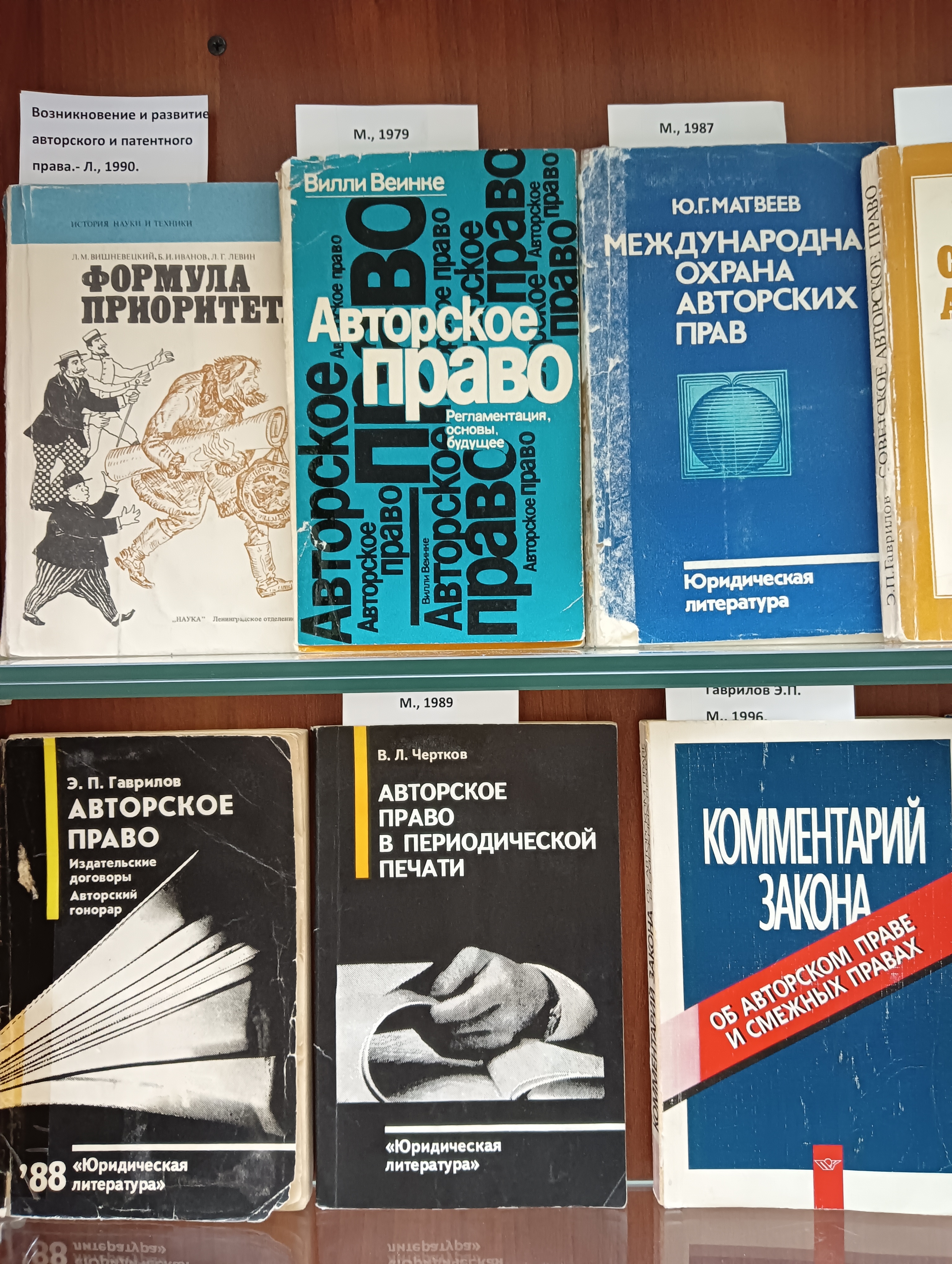 На выставке представлена литература по советскому и российскому праву до принятия части четвертой Гражданского кодекса РФ (2006 г.), а также по актуальным проблемам и отдельным вопросам современного авторского права и смежных прав.