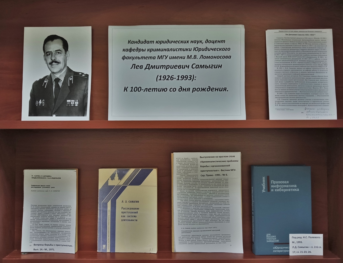 ►Кандидат юридических наук, доцент кафедры криминалистики Юридического факультета МГУ имени М.В. Ломоносова Лев Дмитриевич Самыгин (1926–1993): к 100-летию со дня рождения