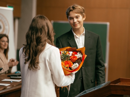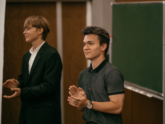 Затем выступили выпускники факультета — члены ДСД прошлых лет: Иван Кувардин, Ирина Секретова, Александра Полухина, Дарья Фомина, которые отметили рост и развитие организации и пожелали успехов молодым коллегам.