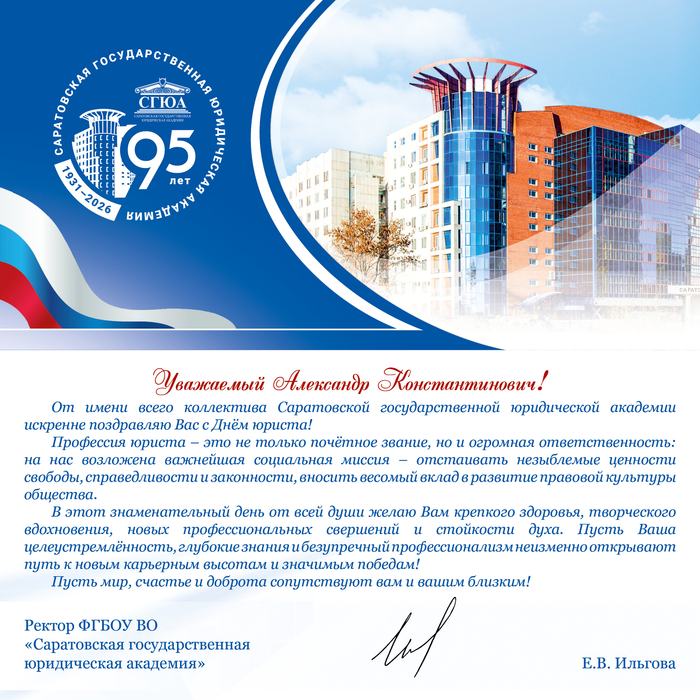 - Е.В. Ильгова, ректор Саратовской государственной юридической академии
