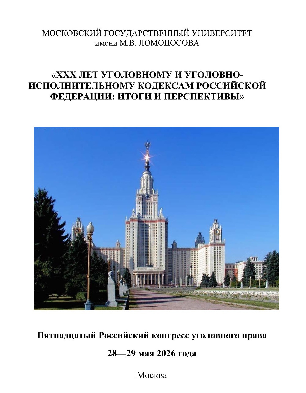 Мероприятие состоится на Юридическом факультете МГУ имени М.В. Ломоносова 28–29 мая 2026 г. в очном формате.